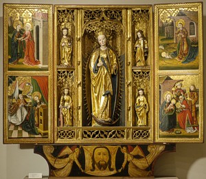 szárnyasoltára, amely szerkezetében is megőrizte az eredeti, késő gótikus állapotot. Az 1480 körül készült oltár szekrényében teljesalakos Mária-alakot látunk Napsugár