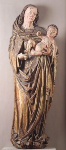 A méltóságteljes, ember nagyságú szobor Máriát és karján a gyermek Jézust ábrázolja. Nagyméretű szárnyasoltár központi alakja volt feltehetőleg a pozsonyi (ma Bratislava, Szlovákia) Szent Márton székesegyház mellékhajójában. A templom 18. századi barokk, belső átalakítása során a gótikus oltárokat eltávolították és a szobor így másodlagosan kerülhetett egy falusi plébániatemplom tulajdonába, ahonnan a Keresztény Múzeum megvásárolta. Az eredeti alkotás szépségét még a szújáratokkal roncsolt és festékrétegét elvesztett állapotában is megőrizte. A kései, 1500 körüli gótika egyik kiemelkedő magyarországi emlékén egyes kutatók a neves ulmi szobrász Hans Multscher (1400 körül-1467) hatását is felfedezni vélik.
