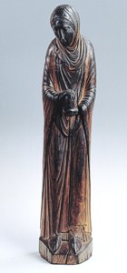 A Keresztény Múzeum legkorábbi, román stílusú faszobra egy Kölnben működő, 12. századi műhelyből származik. A Krisztus sírjához igyekvő három asszony egyikét, talán Mária Magdolnát ábrázolja. A gyászoló asszony egy tégelyben illatszert tart, mellyel az elhunytakat volt szokás bekenni. Ez a jellemző tárgy lett a középkori művészetben Mária Magdolna
