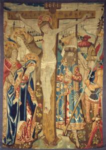Passió-sorozatok egyik része lehetett. A vallásos témájú kárpitokkal az Alpoktól északra lévő nagyobb és gazdagabb székesegyházakat, templomokat díszítették, főleg télen, hogy a falak sugárzó hidegét csökkentsék vele. Háborúk esetén könnyen menekíthették őket. A flamand-francia kárpitok szokásos megoldásai közé tartoznak a szakáll helyett borostás arc, a foglalt ékkövekkel díszített gloriolák ábrázolása. A gazdagon színezett