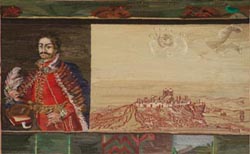 1554-1594) a 17. században készült arcképet és az esztergomi vár régi metszetekről ismert látképét kapcsolta össze. Utóbbi fölé angyal emelkedik az emberi lélek, a művészi halhatatlanság szimbólumaként.Vásárhelyi Katalin (Budapest, II. díj,